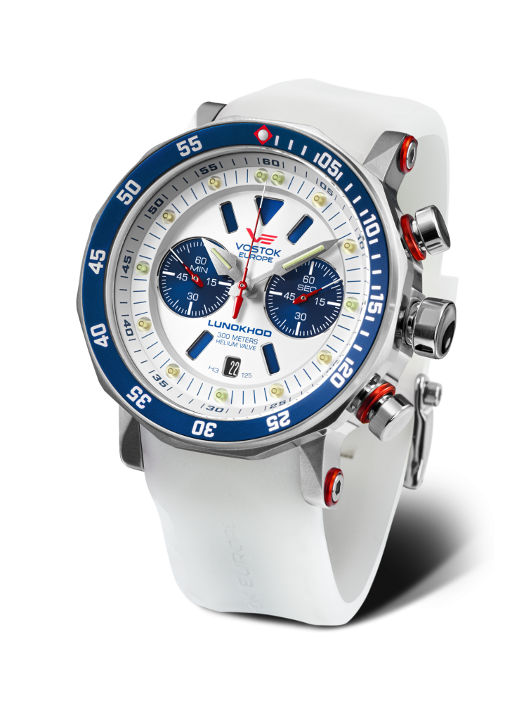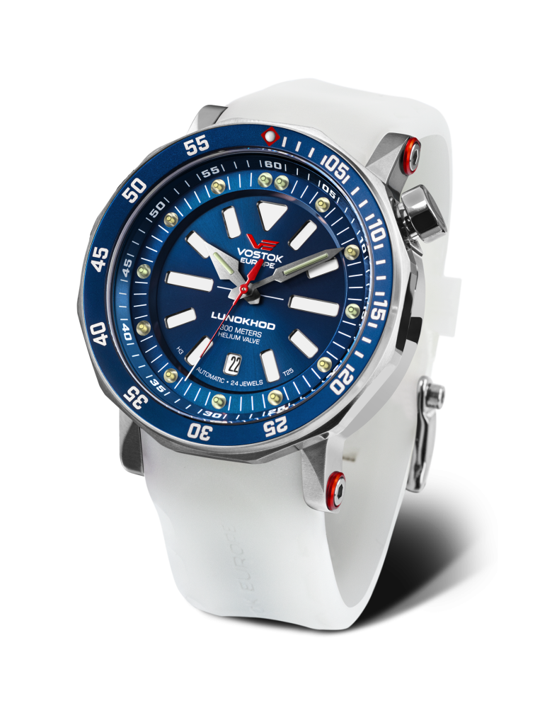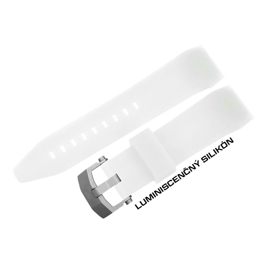 Luminiscenčný silikónový remienok, biely, s oceľovou matnou prackou na pánske hodinky VOSTOK EUROPE model LUNOCHOD 6S21-620A630, NH35-620A634, YM86-620C635 a YM86-620A636