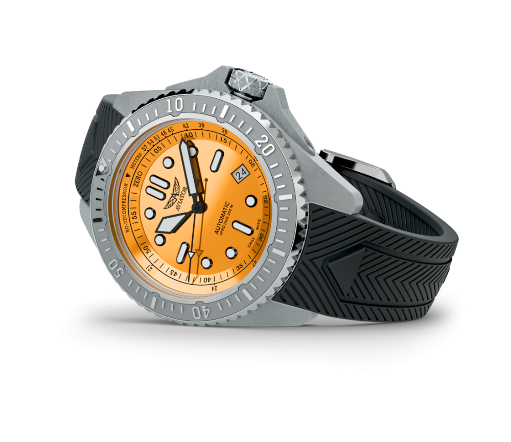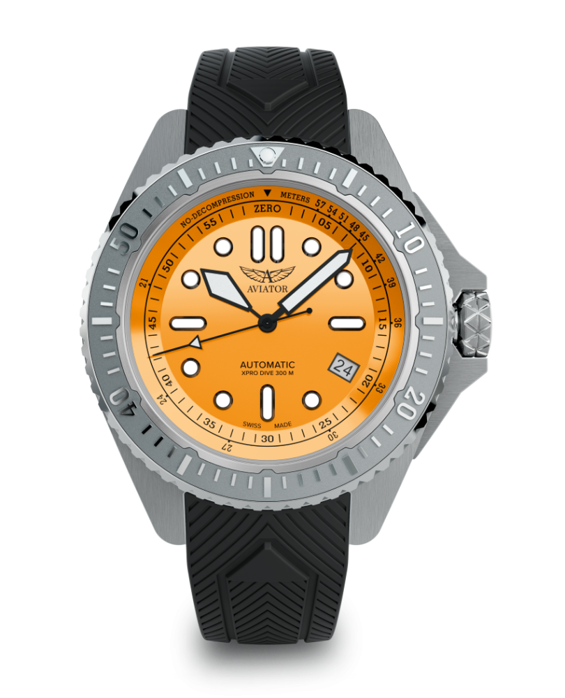 Hodinky AVIATOR XPRO DIVE 300 AUTO boli navrhnuté pre tých, ktorí sa orientujú v oblakoch aj v hlbinách vôd, a nanovo definujú profesionálne meranie času. Tieto hodinky, navrhnuté pre potápačov aj pilotov, kombinujú leteckú presnosť s odolnosťou v hlbokej vode. Vďaka vodotesnosti do 300 metrov, kvalitnému švajčiarskemu strojčeku s automatickým náťahom a dobre viditeľnému ciferníku hodinky zabezpečujú špičkový výkon, či už sa vznášate nad oblakmi alebo skúmate hlbiny vôd.